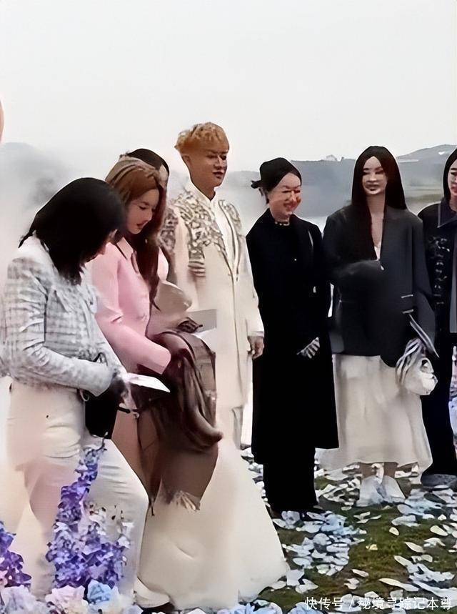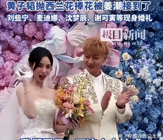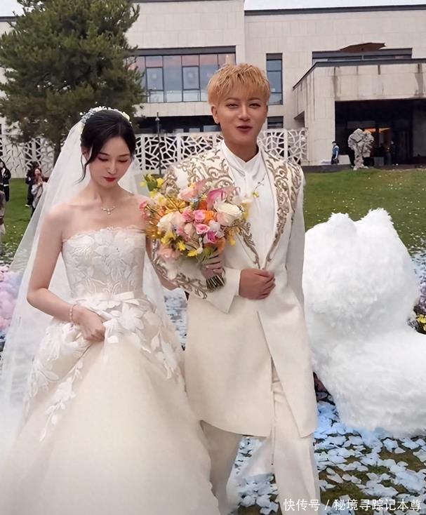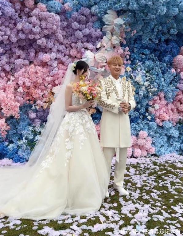 可有人却说新娘婚纱不好看,妆造太普通,没有明星那种闪闪发光的感觉,身上的保暖披肩看起来老气横秋,像是临时借妈妈的。 黄子韬的礼服浮夸还不合身,上面镶的钻不少,可把他的身材衬托成了五五分。