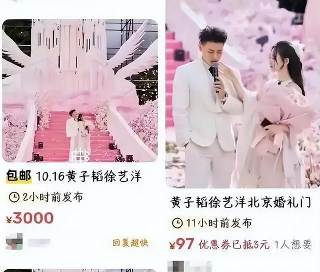 还有人传黄子韬婚礼俨然是群星见面会,婚礼门票都出来了,越来越离谱,随着炒作不断,黄子韬婚礼的热度居高不下。 10日,婚期终于到来,黄子韬也在第一时间开启直播,在直播间晒幸福。